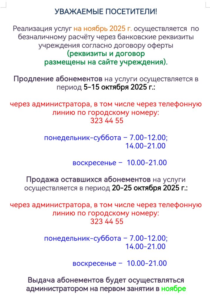 Продажа и продление абонементов (НАЖАТЬ ЗДЕСЬ)